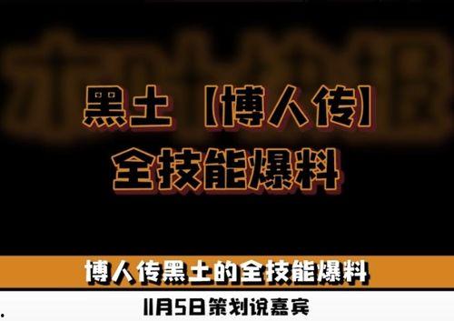 黑土博人传,一款备受玩家喜爱的角色扮演游戏,自问世以来,就以其独特的世界观和丰富的技能系统吸引了无数玩家。而黑土博人传的技能,更是游戏中的一大亮点。如今,最新爆料来袭,让我们一起来看看这些技能的奥秘吧!